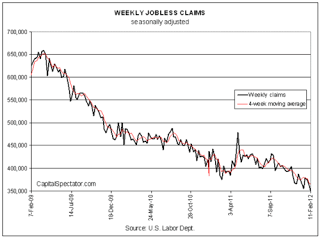 Good news for the stock market keeps rolling in. Jobless claims are at a four-year low as described in James Picarno's article. http://seekingalpha.com/article/371841-jobless-claims-fall-again-to-a-new-4-year-low?source=email_macro_view&ifp=1 Mr. Picarno's graph tells it all.