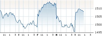 Last week, the fixed-income market's quality spreads forecast a minor correction. Now the bond market suggests that the correction is over, and the equity rally may be back on track. Here is a graph of the S&P for one week.