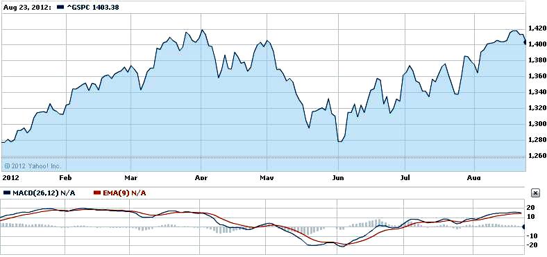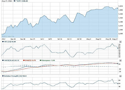 These charts from Yahoo.com suggest, "Yes." The MACD line just crossed and turned negative. Money flows are seeping out of the S&P. Relative strength has dropped. Buy Timing the Market at Amazon.com