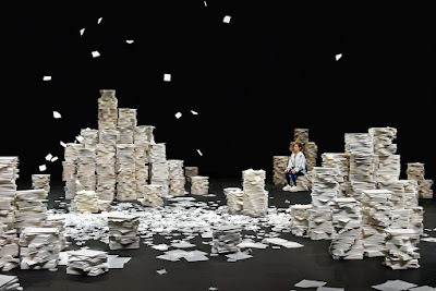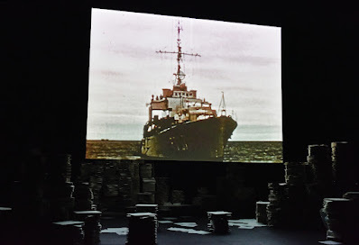 La grange de Dorigny est le théâtre de l'université de Lausanne. Un beau lieu, avec une salle très agréable, où nous avons déjà vu deux spectacles plutôt intéressants, mais pas chroniqués ici. Ce troisième spectacle s'appelle Les océanographes. Dans un décor de piles de papier, évoquant tout aussi bien les fonds marins que le bureau d'une universitaire, le spectacle met en scène tout d'abord Anita Conti, première femme océanographe, présentée comme un personnage plein de verve et d'esprit, un peu cabotin, observatrice très fine du travail des hommes en mer. Elle a voyagé plusieurs mois à bord d'un terre-neuva, le Bois rose, munie d'une caméra 16mm couleurs, et elle a rapporté des pages et des images d'observations fascinantes, poissons, tripes de poissons et marins."Le capitaine est debout 18 heures par jour. Il regarde les hommes. Un homme qui n'est pas regardé est perdu. Pire, il est mort." (citation de mémoire)Suivent des projections d'images incroyables tournées par Conti.La seconde partie du spectacle restitue les propose de deux autres scientifiques, plus modernes, toutes deux aussi utilisant des images venues du fond des océans.