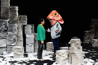 L'histoire est d'un total mauvais goût (si si), le décor est moche, l'animateur est visible sur scène, avec son pantalon de treillis et ses lunettes noires. Et il a un talent dément pour faire vivre les créatures, au point que je me suis dit plusieurs fois : "tiens, c'est drôle, ses lèvres bougent quand les personnages parlent !" Un spectacle dérangeant qui m'a beaucoup plu aussi.