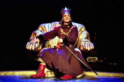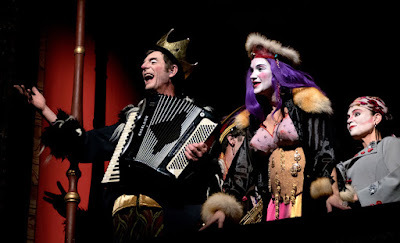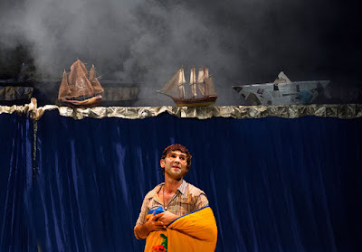 J'ai aimé les costumes flashy, les grandes couronnes des rois, la musique sur scène jouée par les acteurs, le prince et la princesse déguisés à la fois ridicules et touchants, les chansons en italien de l'escroc, les personnages transformés en marionnettes à la fin quand on n'a plus trop le temps de raconter les retrouvailles, les maquettes de bateau, la mise en scène de l'ours.