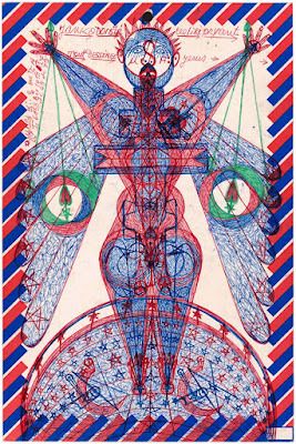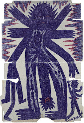 A Haïti, un homme installé dans les quartiers pauvres dessine des centaines de figures de dieux étranges coloriées au stylo bille au dos de paquet de céréales.