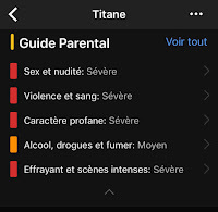 Hier soir, comme nous n'avons pas réussi à convaincre les enfants de regarder un film avec nous, nous avons décidé de regarder Titane, dont j'avais entendu dire qu'il n'était sans doute pas recommandé en dessous de seize ans. A raison. Je ne vais pas en dire grand chose, parce que c'est un film à voir, à ressentir, dont le résumé ne signifierait rien.