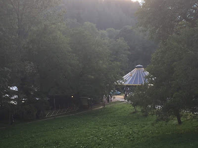 Même si je n'en parle pas chaque année, le festival a toujours lieu, le dernier week-end des vacances scolaires (en Suisse). Trois jours de fête magique dans ce creux de verdure, avec les lampions, les constructions en bois, les enfants qui courent partout jusqu'à ce que la nuit devienne très noire, et les concerts et les spectacles. Les Scènes du chapiteau c'est notre festival, par ce qu'on y retrouve tous les copains du village, et des gens qui viennent de loin (amis, amis d'amis venus donner un coup de main pour assembler les structures temporaires) et d'encore plus loin (migrants en demande d'asile venus avec leur énergie et leur bonne humeur). C'est un moment tellement beau que si je voulais inventer une fête magique dans une histoire, je ne saurais que refléter ces mémoires là, c'est tellement beau que rien qu'à évoquer ce souvenir (c'était hier ! seulement hier !), j'ai envie de pleurer d'émotion.