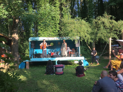 Comme les enfants grandissent, on y reste plus longtemps. Du jeudi soir au dimanche, à la toute fin, pour les dernier applaudissements dans un très beau crépuscule d'été - troisième vague de chaleur sur l'Europe de l'année selon la NASA.Un tout petit festival écolo, où l'on mange bien, où on boit local, où les musiciens viennent de tout près comme de plus loin. Cette année, j'ai pu écouter plus de concerts, voir plus de spectacles que d'habitude, et je vais tenter d'en dire ici quelques mots, pour un peu plus de souvenirs.
