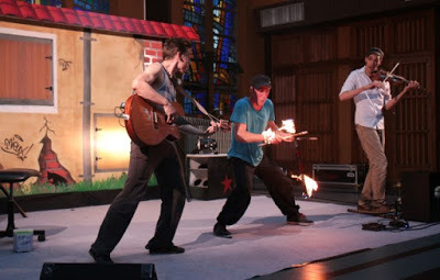 On a commencé avec le Bric à brac orchestra : chansons à jeux de mots dans l'esprit de Boby Lapointe et instruments bricolés. De beaux moments de jeu et de poésie.