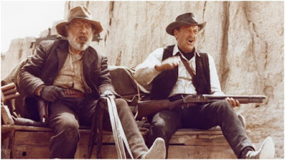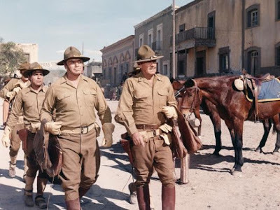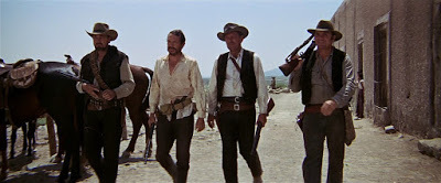 Ce film a été vu dans le cadre d’un cycle domestique informel « faisons-nous une culture western ». Ca commence par une bande de braves soldats qui arrivent en ville. Ils sont virils et bien rasés. La ville est calme et tranquille. Des sales types les attendent sur le toit, en embuscade. Puis les soldats entrent dans la banque et… ces braves types sont en fait des bandits ! Et les sales types des chasseurs de primes ! Et après ça, ça défourraile à tout-va pendant quinze minutes, on ne sait pas qui sont les gentils ni les méchants, des innocents meurent, le combat est super sale et même un gentil spectateur blasé comme moi commence à se sentir un peu mal devant tant de sang et de violence.
