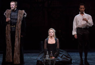 L'innocent (ici, à droite) paie le prix des machinations des monstresEn plus de tout ça, Le pendu a aimé la pièce, son esthétique noire et sanglante traversée d'humour, de traits d'esprit, de recul sur son propre propos. Hugo fait du Shakespeare à la tronçonneuse, gore, sexuel et réellement drôle même dans les moments les plus tragiques. Le travail de la troupe, en inscrivant cela dans une esthétique un peu gritty-fantasy (je trouve qu'il n'y a pas si loin d'eux à Games of thrones), rendait bien hommage au texte et à ce récit foutraque, bancal et romantique, auquel ne survivent que les pires méchants.