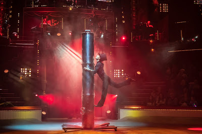 Enfin, une troupe d'acrobates féminines russes, la troupe Shokov, a montré qu'on pouvait faire des sauts périlleux en jupe longue dans un numéro de balancelles très joliment mis en scène. A les regarder, j'ai ressenti ce sentiment de grande étrangeté surnaturelle qui ne me touche que sur certains numéros est qui est la drogue la plus forte que le cirque me procure. Rien que pour les numéros sus-nommés, cela vaut le coup d'aller voir le spectacle.