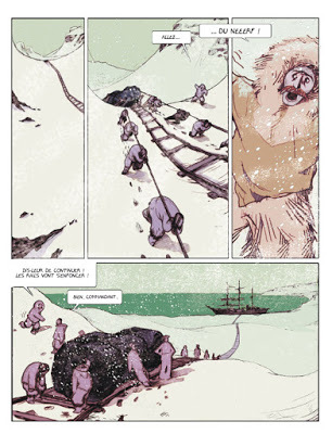 Ce livre délicat raconte la vie de l'enfant et imagine comment le jeune garçon perçoit l'Amérique des années 1900, les vêtements doux, les bains chauds, le parc d'attraction de Coney Island. A travers lui, on va suivre le point de vue inuit sur sur la conquête absurde du pôle, la découverte des pratiques "scientifiques" du museum, le choc du retour dans le monde glacé du Groenland.