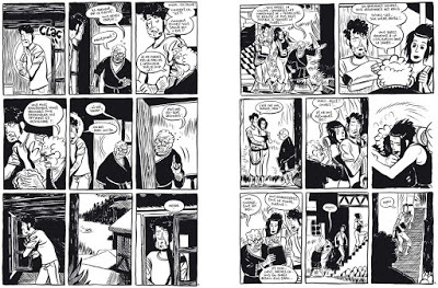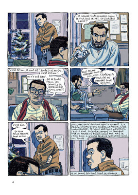 Avec un peu de recul, on sent Peeters très intéressé par les personnages d'hommes. Trentenaire looser dans Lupus, quarantenaire divorcé dans Aâma, et balaise super-viril-mais-sensible dans R.G. (divorcé aussi). Le traitement dans R.G. des ambiances de vestiaire, amitiés sincères mais pudiques, blagues un peu lourdes entre mecs et envies de bagarre me semble juste, même si, je l'avoue, c'est un cadre où je ne me sens personnellement pas très à l'aise.