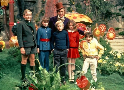 Bien sûr, je n’ai pu m’empêcher de comparer cette adaptation de 1971 avec celle de Tim Burton avec Johnny Depp, plus de trente ans plus tard. Une première chose : le film de 71 n’a rien de honteux. Il est réalisé avec soin, par des gens qui faisaient attention à leur travail et cherchaient à en donner au spectateur pour leur argent. Toutefois, tenter de rendre crédible à l’écran les folies de l’histoire de Roald Dahl, sans fabriquer complètement les images comme le fait Tim Burton, est une sacré gageure. Le film a été tourné en Bavière (jolies rues médiévales, toits pointus, architecture industrielle du XIXème siècle), ce qui lui donne une curieuse ambiance. L’usine de chocolats a quelque chose d’un parc d’attractions, animé par une bande de nains couverts de fond de train orange. La volonté de montrer est lourde et explicite et le réalisateur peine à suggérer, sauf peut-être dans l’inquiétante scène psychédélique du bateau, où Willy Wonka devient réellement inquiétant — ce qu’il est. Les personnages de Roald Dahl ne sont jamais dépourvus de cruauté. La comparaison avec les images de Tim Burton m’a fait m’interroger, à mon échelle,