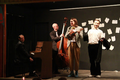 Ces quelques pièces sont devenues un spectacle entier, à la fois amusant et tragique, avec le même cadre aux yeux fous, l'informaticien et l'ambitieuse directrice marketing. Je ne suis pas amateur de danse (je n'y comprends rien), mais les claquettes exercent sur moi une fascination hypnotique, dans la manière dont les danseurs planent et glissent en antigravité, dont la musique des talons accompagne celle des instruments.