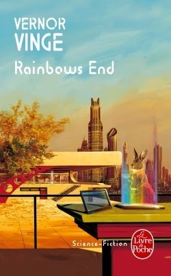 Rainbows end (la fin des arcs-en-ciel, et non le pied de l'arc-en-ciel, même si on peut supposer que le double-sens est voulu) est le nom d'une maison de retraite, rappelant au lecteur et aux personnages que malgré les miracles des technologies les hommes restent des êtres finis. Malgré son univers déroutant, très pré-singularité, le roman est tout à fait accessible et facile à lire, en plus d'être une des anticipations les plus profondes et crédibles de ce que pourrait être un monde où les flux d'informations sont mille fois ce qu'ils sont maintenant. Les idées fusent dans tous les sens, le roman explore la vie intime, la vie scolaire, les relations de pouvoir, le hacking, les virus, la sécurité, les jeux, comme une plongée dans ce futur hyper-californien, assez optimiste malgré le terrorisme et les fous qui pullulent.Une intrigue d'espionnage assez intéressante sert de fil rouge à cette plongée, même si je la trouve un peu trop liée à la famille Gu et pas assez développée dans ses implications - j'aurais aimé en savoir plus sur ses tenants et aboutissants (et je ne demande même pas l'identité du lapin...). Je suis également surpris par la totale absence dans le livre de toute dimension sexuelle. Les personnages s'intéressent à la science, à leurs études, à leurs problèmes familiaux, mais les corps - quand ils ne sont pas malades - paraissent tout à fait absents de leurs préoccupations. Est-ce un oubli volontaire de la part de l'auteur, ou bien un point aveugle ?Si on pense qu'un des buts de la science-fiction est de provoquer des vertiges, Rainbows end est une grande réussite. Bourré d'idées, facile d'accès, avec des personnages plutôt bien écrits, ce roman de Vernor Vinge nous emmène loin.