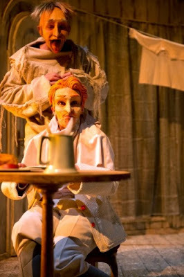 Pour réussir ce pari, les comédiens, accompagnés par la metteuse en scène Evelyne Castellino, on joué sur une condensation du texte, un jeu hyper physique, tout en énergie et en image, et des personnages identifiés par des masques, très réussis. Le spectacle est un tourbillon d'élans, d'idées, de situations qui se percutent. Il y a des gags tout le temps, du premier au dernier plan, et toute l'intrigue passe, à travers le mouvement et l'humour.Une très très grande réussite, qui nous a laissés enthousiastes, et essoufflés.