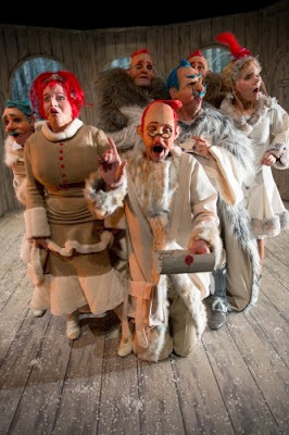 XXIème siècle : les Artpenteurs sont une troupe de théâtre de Suisse romande, intègre et talentueuse, qui aime se lancer dans les défis les plus fous. (comme monter un western sous petit chapiteau, ou arranger un spectacle de lecture de textes de SF). Là, associée avec le Petit théâtre de Lausanne (dont on ne louera pas assez le bon goût de la programmation), ils ont eu l'idée dingue de monter cette comédie pour des enfants. En condensant l'intrigue sur 1h15, avec des danses et des chansons (en russe) ! Nous y avons emmenés Rosa et Marguerite, assises au premier rang avec d'autres enfants, et elles ont tout saisi et tout compris. Les magouilles, l'argent qu'on échange, les illusions et les espoirs déçus.