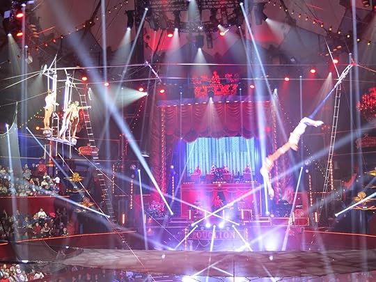 Parmi les réussites mémorables de cette année, un formidable numéro d'acrobaties sur éléphants (des éléphants d'Afrique ?), les flying Mendoza, un beau groupe de trapèze volant brésilien, très frime et très stylés. Un beau numéro de mât chinois par Loesvel et Dismani. J'ai été plus sceptique quant au main à main Momento di passione : deux belles filles soutenaient pour les figures un petit costaud. On voyait bien ici une tentative d'inverser certains stéréotypes sexistes (le cirque n'en est pas dépourvu...), mais le résultat n'était pas très heureux avec deux femmes servant de faire-valoir et portant en force un bonhomme.