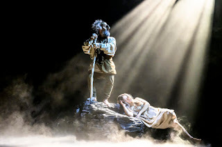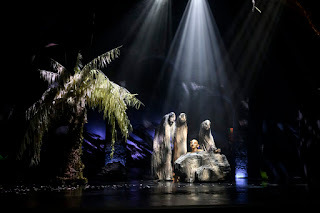 Sur scène, on a une tempête (évidemment), des brumes, des illusions, des éclairs, des fées, des créatures esprits silencieuses qui nous contemplent en silence... C'est très-beau et très-merveilleux, voyez-le si vous n'avez jamais vu ça.