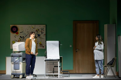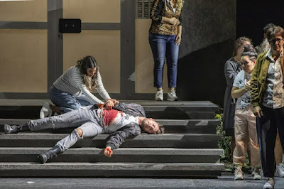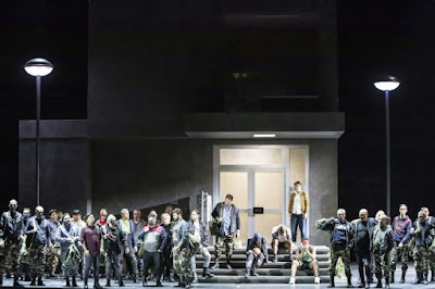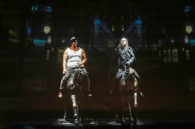 Les chanteurs sont super, j'ai particulièrement aimé Amina Edris en Marguerite (qui joue aussi bien qu'elle chante) et Florian Sempey en Valentin, mention spéciale à Marina Viotti en Siebel ("les mezzos, c'est souvent les potes de l'héroïne", dixit Rosa), les chœurs très bons, l'orchestre qui exécute cette partition et ce compositeur avec énergie. Il y a des tonnes de pognon dans la mise en scène, quelques trucs très réussis avec des jeux de vidéos projetées sur écran semi transparent.