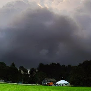 A la fin de l'été, quelques jours avant la rentrée des classes, à Romainmôtier. Contempler l'abbatiale un moment puis traverser le village, longer le canal dans l'ombre des arbres et rejoindre un creux de terrain. Le grand chapiteau blanc est là, et des tentes, des roulottes, du vin, des poulets à rôtir sur la broche, des balançoires pour les enfants, des amis. Sous le chapiteau, des chaises, une scène de la musique, des contes... Le jazz manouche de Gadjo le restaurant un peu fou un peu crado du Quatuor bocal l'énergie folle du Vufflens Jazz Band, la très belle Maria De la Paz, les contes en Kamishibaï de David Telese, et le folk-tradi-bricolé des Piémontais de la Quinta Rua du Ricetto de Candelo, mes favoris de cette année (salut Raffaele, Guido, Dando !) et tous ceux aux concerts desquels je n'ai pas pu assister. A la nuit, tout s'illumine, les acrobates passent dans des rayons de lumière. Des semaines d'efforts, de constructions bouclées à la dernière minute, mais qui valaient la peine (le petit bâtiment en miroirs dans les arbres, la roulotte, les auvents…), trois jours épuisants et magnifiques, la fête magique du Grand Meaulnes au bord du Nozon. C'était beau et précieux, à la fin de l'été.