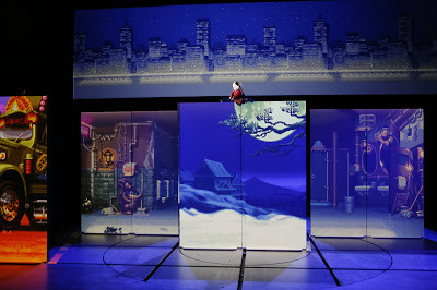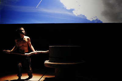 Malheureusement nous sommes partis au bout d'1h30. Mise en scène à gros moyens, décors tournants, utilisation abusive des projections (je sais que c'est à la mode, mais stop ! Quand l'action passe dans les projections, je m'étrangle !), et en même temps texte aplati, action étirée, décor imposant plutôt que suggéré… Et surtout, au bout d'une heure, un des personnages qui se balade à poil. Une sorte de point de Godwin du théâtre : quand j'aperçois des organes génitaux masculins sur scène, je comprends que le metteur en scène n'a plus rien à dire… Cecci et moi encourageons d'ailleurs les programmateurs à indiquer sur le descriptif des pièces la présence ou non d'acteurs nus afin que les spectateurs puissent choisir en fonction.