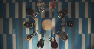 J'ai trouvé la scène d'ouvertur très déplaisante à regarder et à suivre - à l'image du malaise du moment. Collection de gros plans, sur les visages, les verres, le chien, musique qui envahit tout. Une sorte de mise en image de l'entregistrement sur le téléphone de la thésarde. En y repensant, l'effet est très cool.