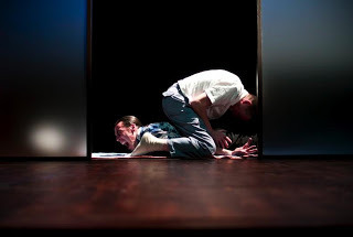 Ce spectacle est ma première expérience de théâtre narratif : il s'agit d'une adaptation de roman [1], ça se sent, qui mêle plusieurs points de vue, plusieurs niveaux d'action, montés un peu comme au cinéma, avec des simultanéités et des alternances. J'ai tout de suite senti sur scène l'univers de Murakami, où l'imagination infuse le monde (ou l'inverse?), où des personnages sympathiques, paumés, étranges, hybrides, se rencontrent et se transforment.L'histoire ? Kafka Tamura, un ado, fuit son père et une mystérieuse prédication oedipienne, pour aller s'enfermer dans une petite bibliothèque historique, quelque part sur Shikoku. Pourquoi perd-il parfois conscience ? Pourquoi a-t-il du sang sur sa chemise ? Parviendra-t-il à coucher avec l'une des jolies femmes qu'il croisera ? Qu'est-ce qu'essaie de lui dire Oshima-San, le mystérieux bibliothécaire qui cite Aristote à tout bout de champ ? Par ailleurs Nagata, un vieux bizarre et illettré, capable de parler aux chats, rencontre Johnny Walker (celui de la bouteille de whisky, si, si, la scène est énorme), sauve Sésame la chatte en fuite et se lance dans un voyage vers le sud, vers la même petite ville que celle où Kafka s'est réfugiée, en compagnie d'un routier sympathique. Mais quel rapport entre Tanaka et les enfants endormis, en 1944, sur la colline du bol de riz ? Et qu'est-ce que cette maudite pierre de l'entrée ?