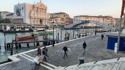 The moment I'll remember most from my recent visit to Venice was when I emerged from a dark alley onto a wide sidewalk on the banks of a busy canal. It was very early and the canal was alive. Water taxis and vaporettos, delivery boats and cargo barges. The sounds of motors blaring from boats going to and fro, their captains calling out to each other. The hurried pace of locals and tourists, on my side of the canal and on the far bank, scurrying up the stairs to the Santa Lucia Train Station.