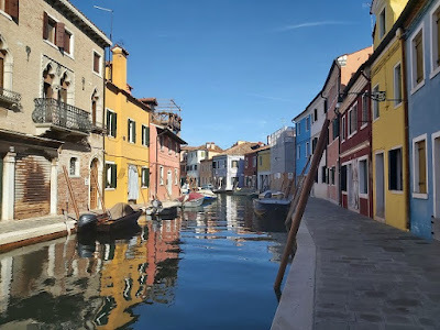 What else will I remember from our short stay in Venice? Eating bite-size Venetian cicchetti while drinking Campari; wandering through the streets and over canal bridges without getting lost (thanks to Google Maps, although I was disappointed by the lack of fog); the good food; our visit to colorful Burano; and the grandeur of the Doges Palace. But more than anything else, I will always cherish my memory of seeing the early morning hubbub of Venice's busy canals for the first time.
