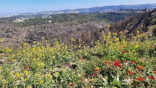 Yesterday I hiked at Sataf with my sister, Judy, in forests burned last August. Although I could see the charred remains of burnt trees, and the dry, brown areas that had been suffered, the area was also beautiful after the plentiful rains of this past winter. As we go into summer, the wildflowers covering the ground will dry out, It will take years until the forest regains its former green splendor. But yesterday I could really sense how beautiful this area of the Jerusalem was, and how beautiful it will again be in the future.
