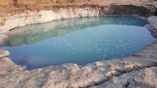 A sinkhole is, according to Wikipedia, a “depression or hole in the ground caused by some form of collapse of the surface layer”. The Dead Sea shores are littered with them due to the porous ground left by the shrinking sea.