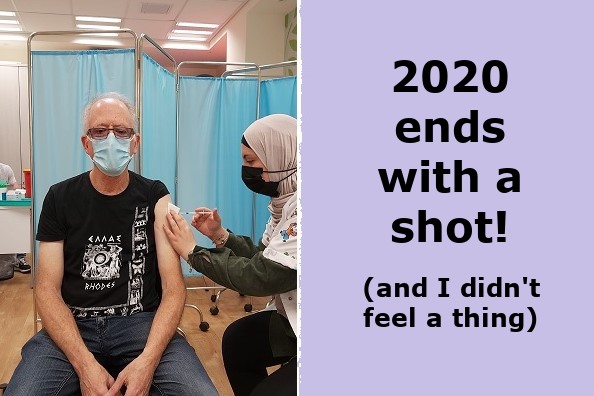 Jodie registered us on our health care provider’s website and our vaccinations were set for January 6th. However, a few days later, the nurse on our moshav called to say that there were openings on December 30th. We would get our shots at a clinic in Mevesseret at exactly 14:09 and 14:14 on Wednesday afternoon.