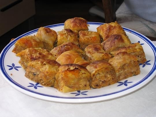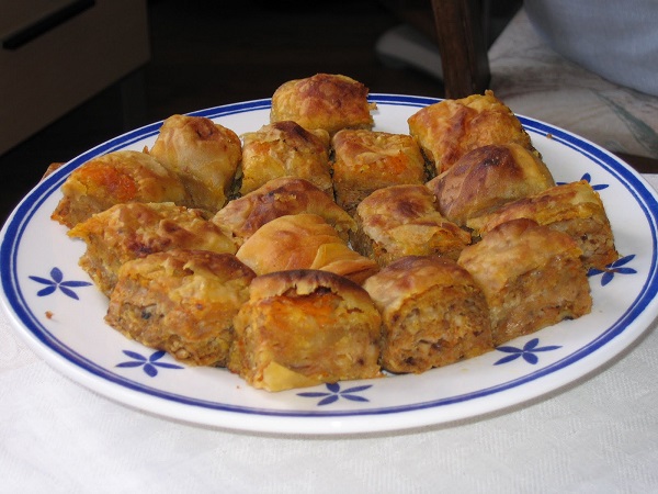 The pogacha is very tasty as are the other refreshments. Meats, cheeses, and pastries. The sweet banitsa pastry with pumpkin and walnuts, made by the 87-year-old great-grandmother of little Nikola, is particularly scrumptious. Nikola is her fifth great-grandchild.