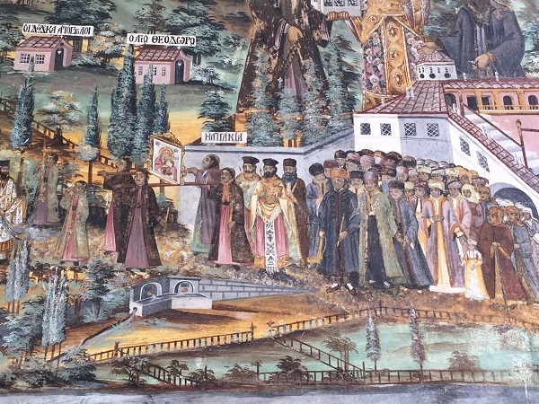 Bachkovo Monastery was originally founded in the year 1083 as a seminary for youth. Although it survived the Turkish invasion it was later looted and restored in the 15th century. The Cathedral Church of the Virgin Mary dates back to 1604. Across from the church is a colorful panorama mural depicting the history of the monastery; the painting is quite modern as it was completed in the mid-19th century.