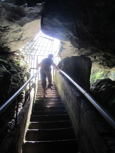 The cave is open every day from 10am to 4pm and entrance is only with a guide, and most of the guides speak English. The entranceway is well lit, cool and dry, but then one reaches the main hall, a cavern so huge that Sofia's Alexander Nevsky Cathedral could easily fit inside with room to spare. With the thunder of the underground river pounding in one's ears, you reach a steep set of wet, concrete stairs leading to daylight high above. This is the halfway point – the weak at heart can go back to the cave's main entrance. I venture upwards, holding onto the handrail for dear life, as the steps are very slippery.