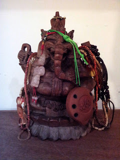 After many, many years of lurking in the corner of bedrooms and kitchens the SoP #11, The Library of N'LoRC, finally found it's own niche in the box room of a North London flat. The God of N'LoRC, Ganesha, is pictured above.