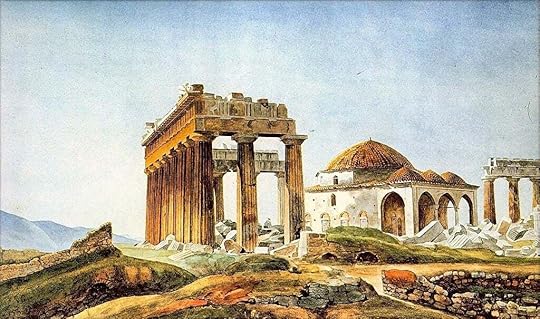 Şəkildə gördüyünüz məscid Panteon dağılandan sonra onun xarabalıqları yanında osmanlılar tərəfindən 1715-ci ildə inşa edilib, amma 1832-ci ildə yunanlar Afinaya nəzarəti yenidən öz əllərinə keçirdikdən sonra orta əsrlərdə Akropol ərazisində tikilmiş bütün tikililər ilə birlikdə bu məscidi də sökürlər. Məscidi indi yalnız həmin zamana kimi ora səyahət edən rəssamların şəkillərində görmək mümkündür. Məsələn, bu şəkil 1830-cu illərin əvvələrində fransız zabiti, mühəndisi və rəssamı Pierre Peytier tərəfindən çəkilib.