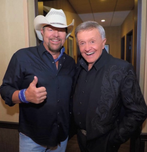 I never got the chance to know Toby as well as I would have liked to, but I always enjoyed his company and certainly admired his talent. I wish I could have written a song or two with him…he was a great writer as well as a performer. This picture was taken in the hallway backstage at the Grand Ole Opry when he made one of his rare appearances there. He gave us a lot of good music and left us with a lot of good memories. May he rest in peace.