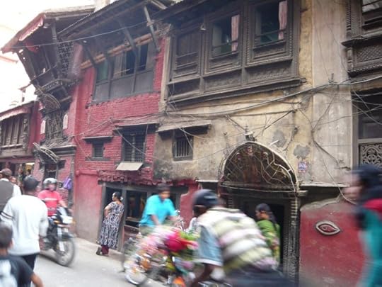 Side street in Thamel, Kathmandu. The lovely old buildings…beautiful wood carvings…collapsing brickwork…wiring all over the place…speed…calm…old and new…………the only things I can’t bring you are the sounds and smells…you must imagine them for yourselves. Coming soon, scratch and sniff websites!!!