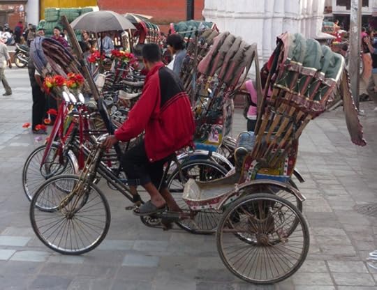 Bicycle rickshaws awaiting customers in Durbar Square.