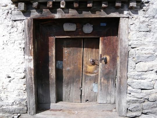 Traditional door in old house, Khumjung village, near Namche Bazaar.