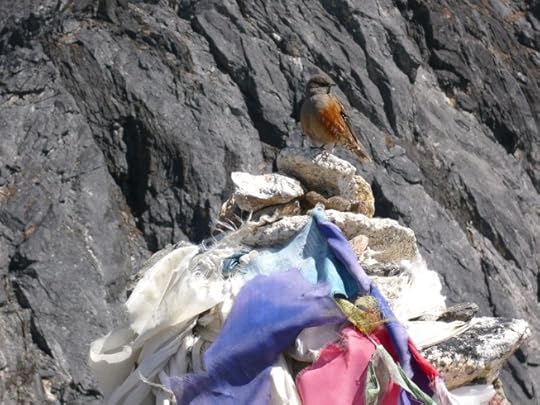 Himalayan Accentor on top of a cairn on Nagartsang Peak . This is a 5083m ‘Trekking’ Peak, ie one that can be ascended without having to use climbing skills. Apparently in America cairns are referred to as ‘ducks’, due to their shapes. So, for American bloggers: Bird on Duck.