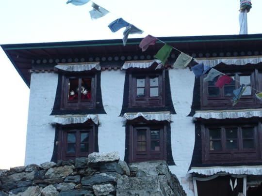 By the end of my second day there, I had slightly rearranged the room to get it how I wanted it. My few books were lined up on the windowsill. Various belongings were on the table. I had hung a string of prayer flags along the wall. Little touches.