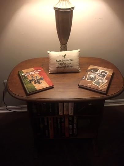 I went to friend house this past weekend. He is a bigger reader than I am and of course a fan. Just as I was getting ready to sit down to eat my meal, this is what I saw at his reading chair. It took my breath away. Best party ever!!