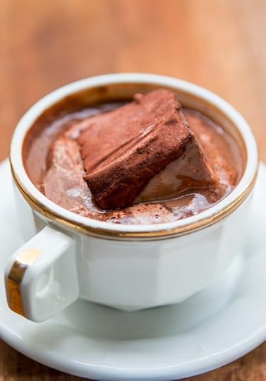 Marshmallows are one (or some) of my favorite things. We don’t often use ‘marshmallow’ in the singular and we certainly don’t make them one at a time. When we talk about marshmallows, it’s generally in the plural since it’s hard to imagine just one, lone, solitary marshmallow. That would be triste, as you’d say in French, or sad. Except, of course, when it’s floating on top of a warm cup of hot chocolate. That makes me happy. And what makes me even happier is when the marshmallow is made of chocolate. In that case, I’m absolutely delighted.