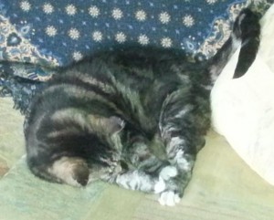 Yes, Easter Monday and April Fool’s Day both falling at once seem an excellent time for that great tradition of authorial blogs—’here’s (a/another) photo of my cat.’