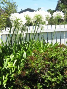 It's not quite so warm this morning after a night of rain, but it is clear and promises to fine up even more later — & I thought what better for the blog today than a photo of those agapanthas. I have blue ones as well but I always think these white ones are extra special.