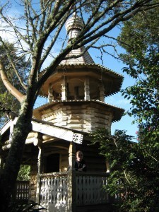 Last weekend I posted about a (very) few of the cool places I visted on my holiday and featured a few photos of the Hamilton Gardens, including the wonderful Russian belltower. Today I'm going to share a secret with you—it was this belltower that was the inspiration for the belvedere in Thornspell. Those of you who know Thornspell—and I do not think these will be spoilers for those who have not read it yet—may recall that the belvedere features in two sections of the book: Sigismund's (the prince's) adventures following the boar hunt in the mid-part of the story, and again in the final confrontation with the Margravine. Chapter 15 is even called "The Belvedere" which is probably a clue that it's reasonably important in the story.