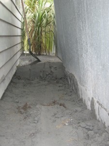Yesterday, 27 February, we finally completed the last of the serious liquefaction clearance. There is still a lot of finishing off to be done, but the major part of the material that was clogging the driveway, garage and surrounds to the house has been removed—and what can now be seen is interesting, to say the least. The driveway is no longer a level length of asphalt, but now boasts interesting landscape features in the form of 'escarpments' and 'rising ground'.